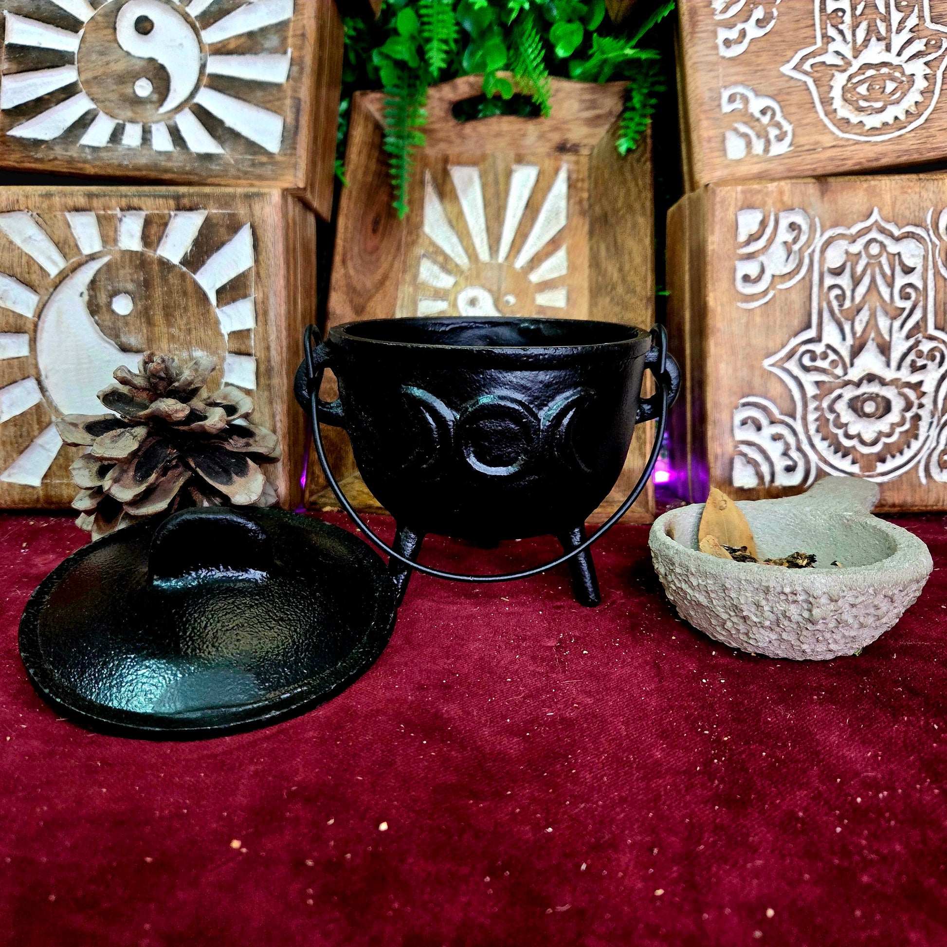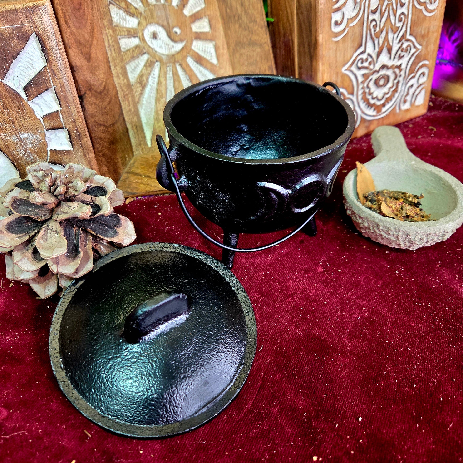 El caldero viene con una tapadera resistente para un manejo seguro y fácil. Puedes colocarlo directamente sobre tu altar o utilizarlo con un soporte resistente para quemar inciensos de manera segura.
