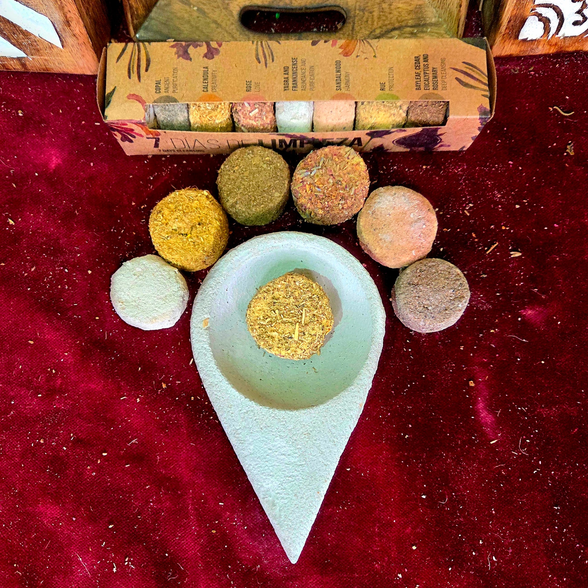 Cada pastilla está pensada para acompañarte durante los 7 días de la semana, permitiéndote crear un ritual diario de defumación. Con su encendido fácil y su combustión estable, estas pastillas son perfectas para apoyar tus prácticas espirituales, meditaciones o para simplemente limpiar y revitalizar el ambiente de tu hogar u oficina, aportando frescura y claridad energética.