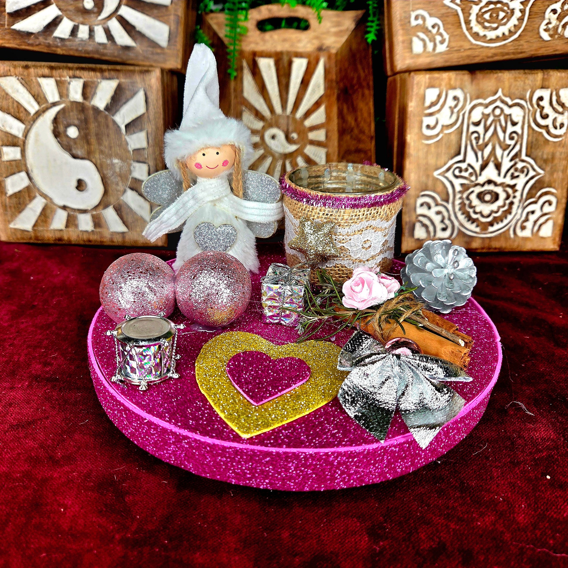 Este centro de mesa es ideal para acompañar cenas familiares, decorar tu salón o crear un rincón especial lleno de paz y encanto. La combinación de elementos naturales, luz de vela y símbolos de protección lo convierten en un detalle perfecto para regalar o para embellecer tu propio hogar en estas fechas.