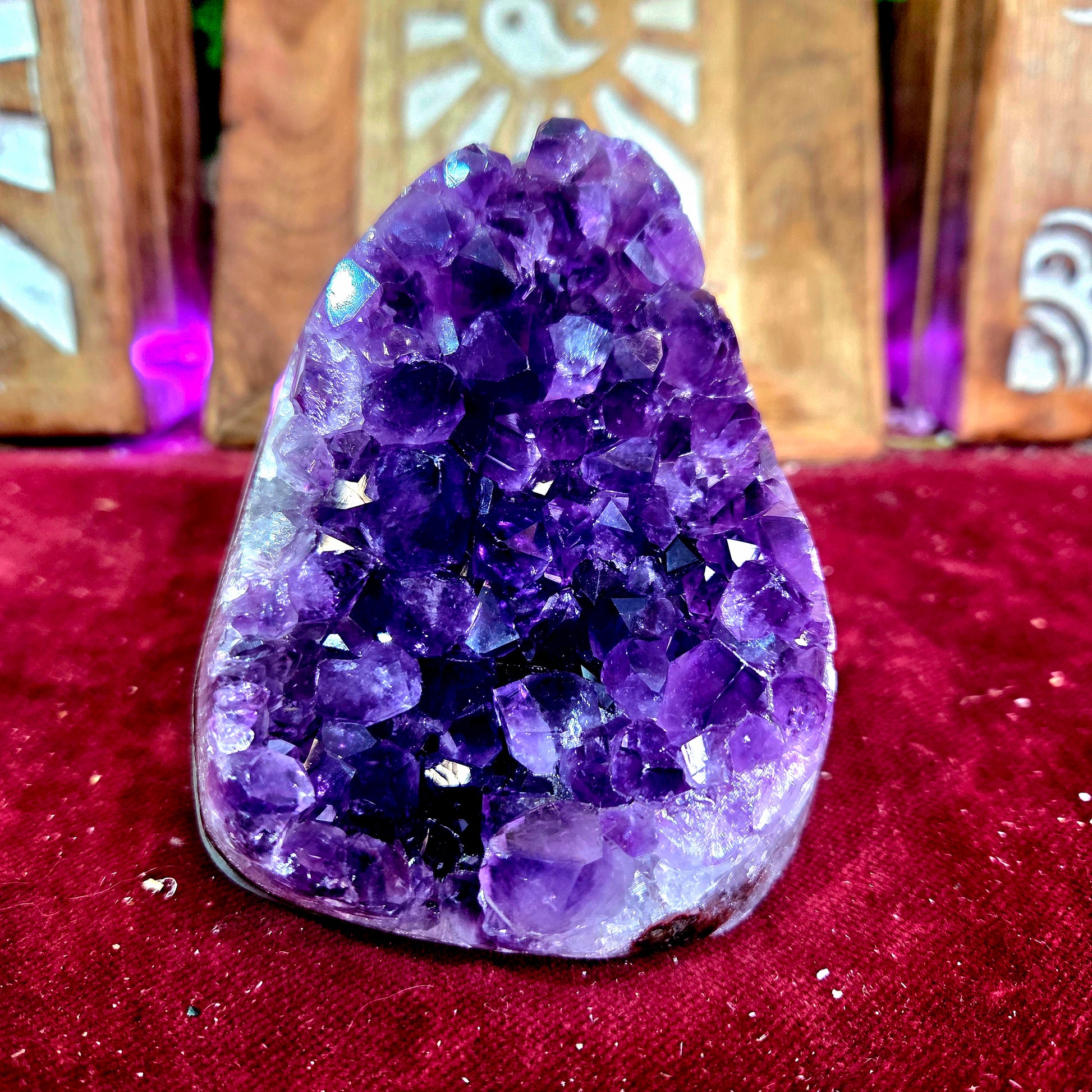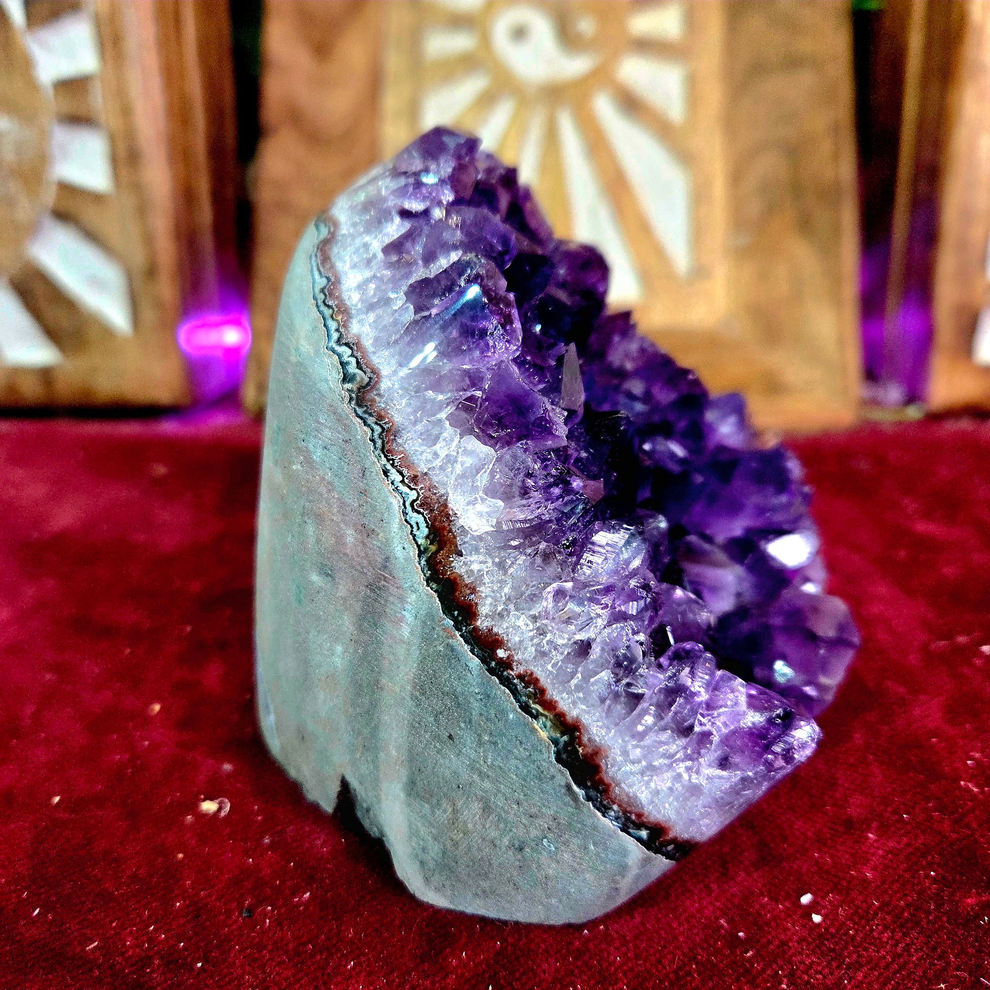 Las drusas de amatista son conocidas por sus propiedades calmantes y equilibrantes. Coloca estas maravillosas piezas en tu hogar, oficina o espacio sagrado para crear un ambiente de serenidad y armonía.
