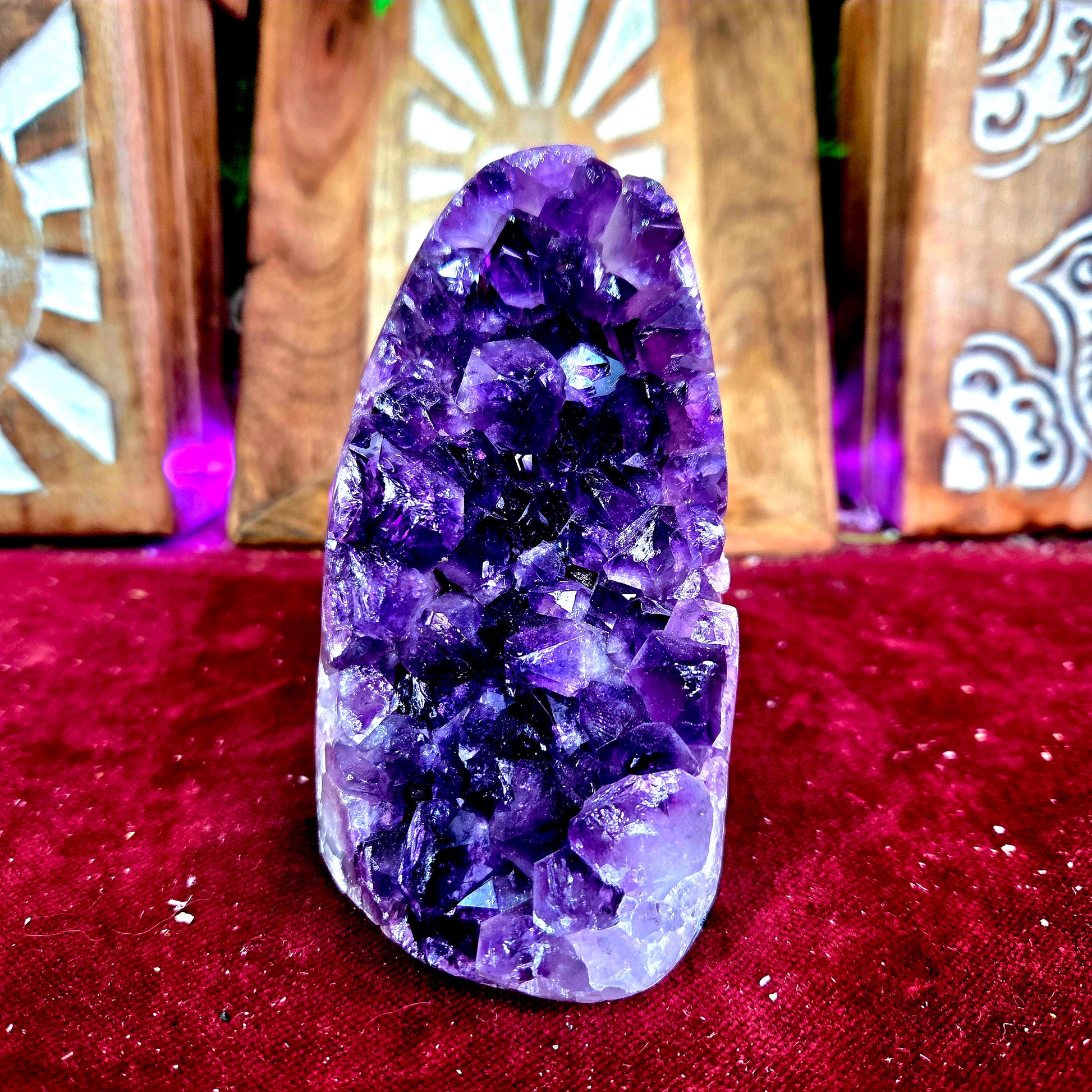 Las drusas de amatista son conocidas por sus propiedades calmantes y equilibrantes. Coloca estas maravillosas piezas en tu hogar, oficina o espacio sagrado para crear un ambiente de serenidad y armonía.
