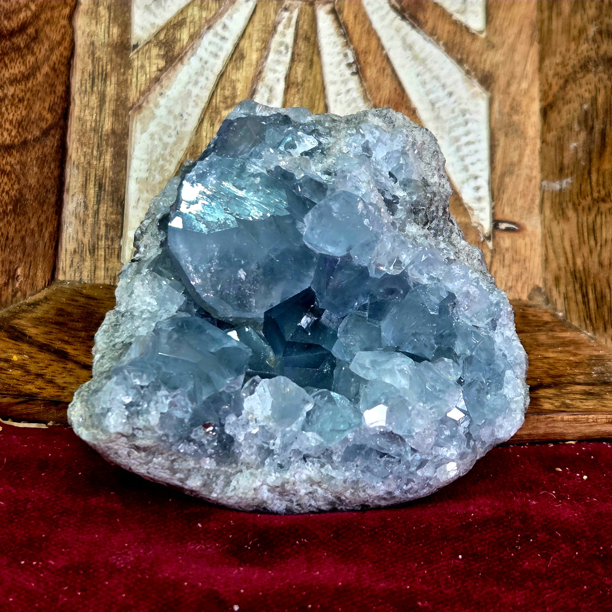 Su brillo delicado y su color azul celeste la convierten en una pieza perfecta tanto para decoración como para acompañar en prácticas de meditación, yoga o relajación. La celestina es muy valorada por aportar claridad mental, aliviar el estrés y elevar la energía espiritual.