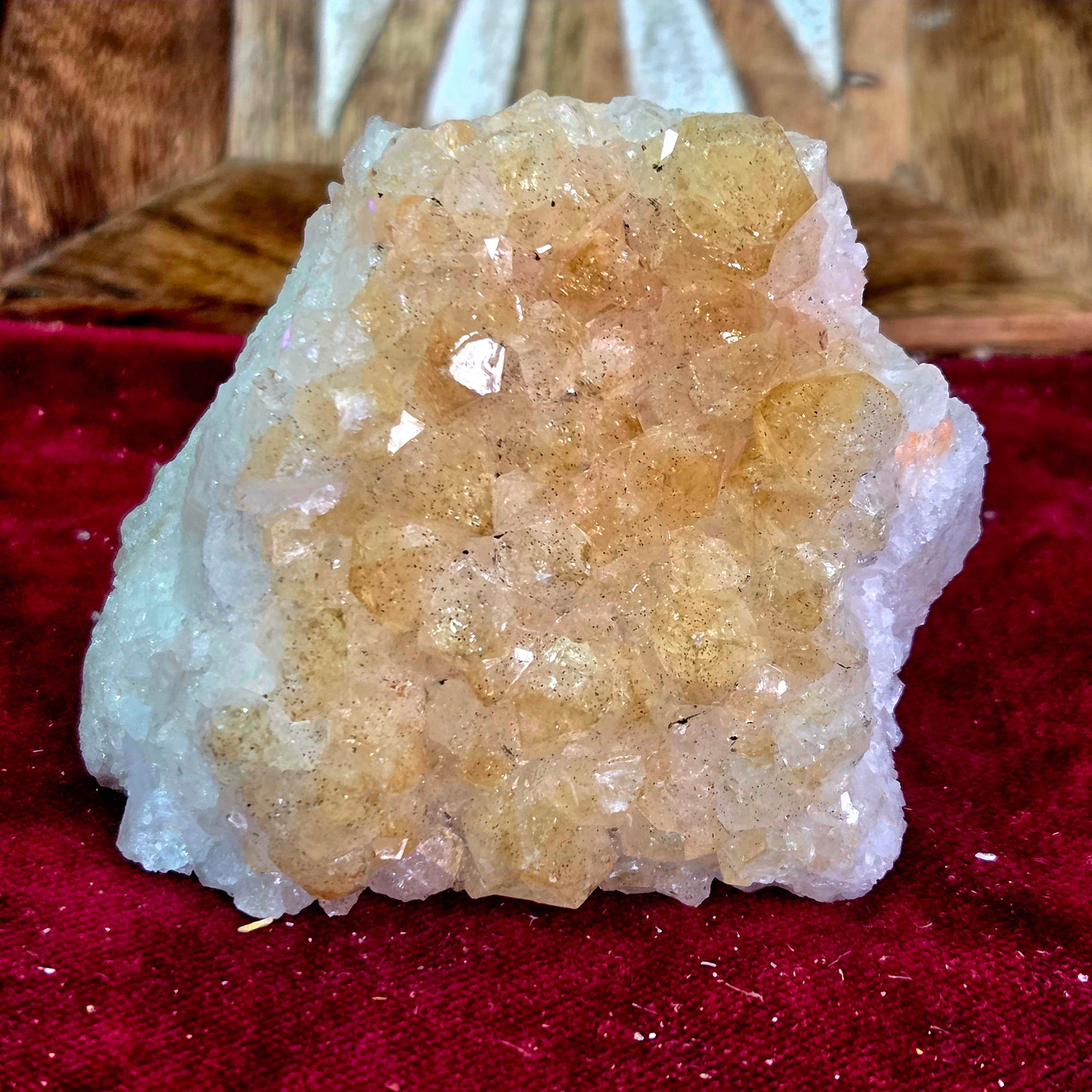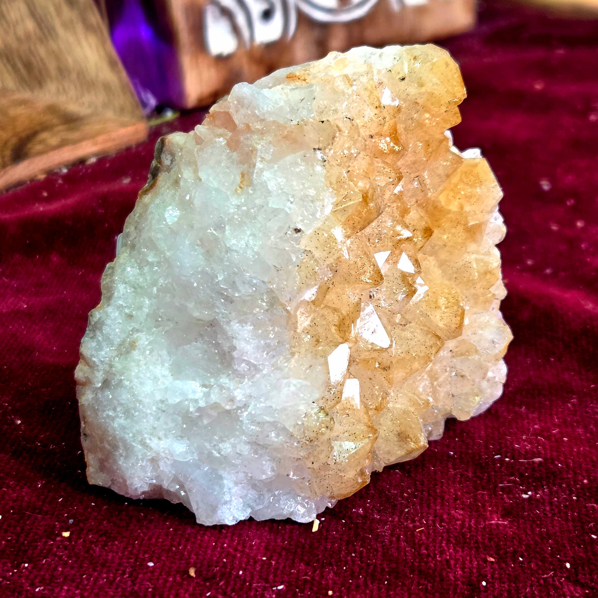 Cada drusa es única en su forma y brillo, perfecta tanto para decoración como para prácticas de meditación, feng shui o rituales energéticos. Además de su belleza natural, el citrino es considerado un poderoso armonizador del ambiente, capaz de aportar alegría y equilibrio emocional.