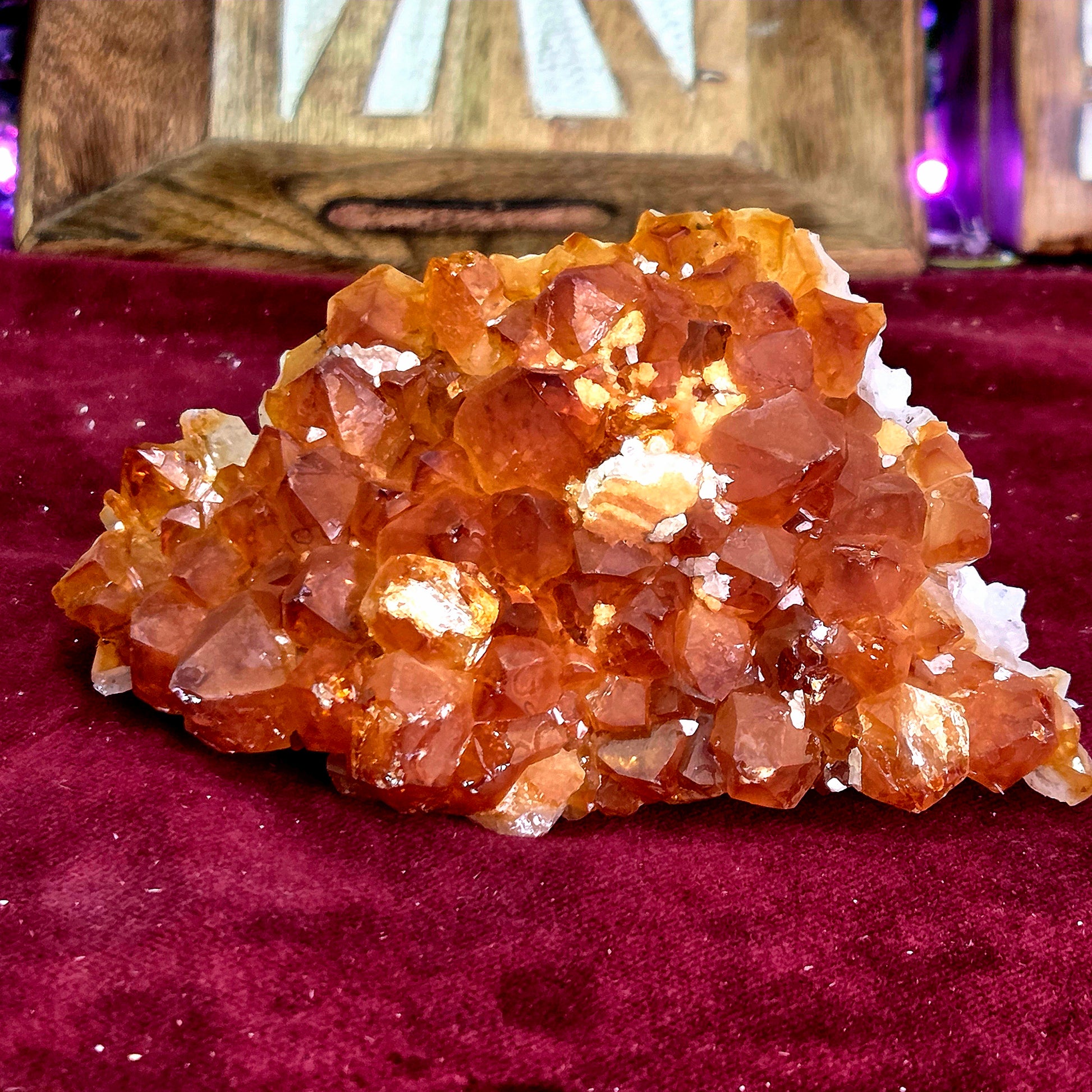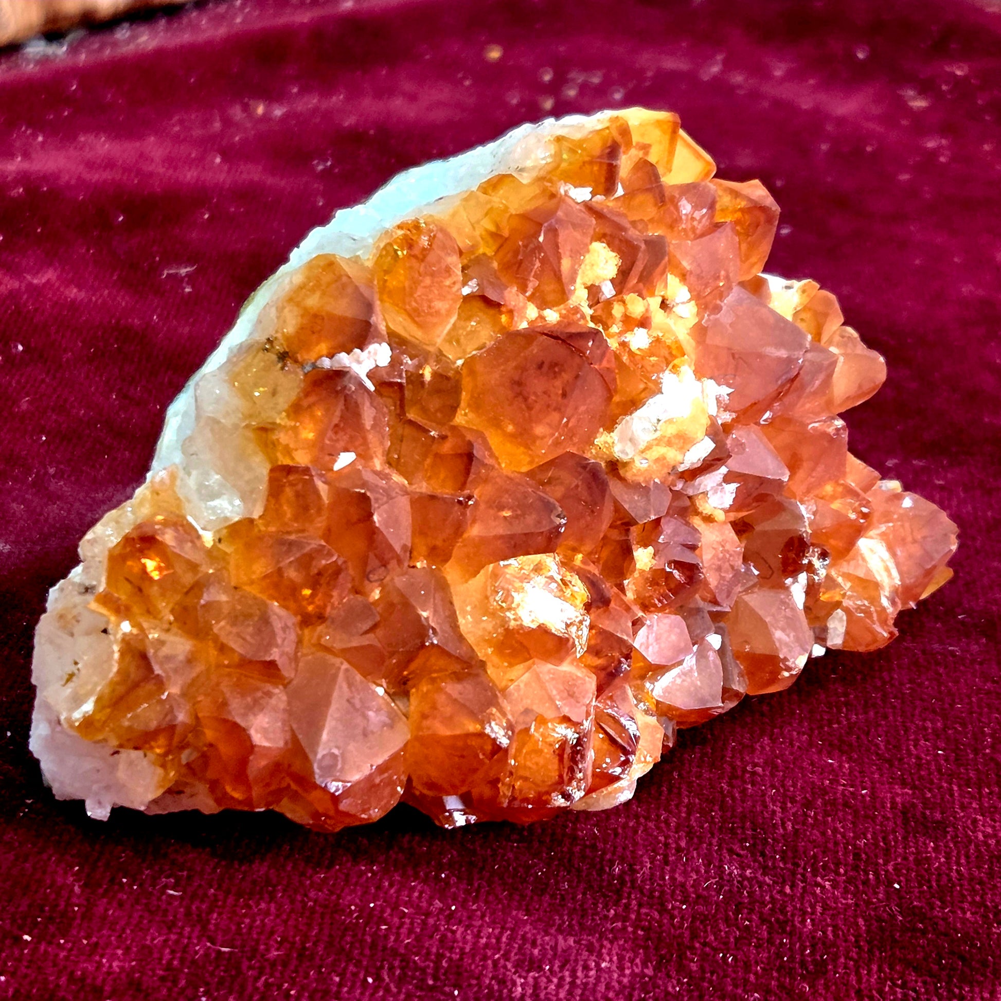 La drusa de citrino natural es un mineral muy apreciado por su energía cálida y su vibrante tonalidad dorada. Conocido como la piedra de la prosperidad y la abundancia, el citrino ayuda a atraer éxito, vitalidad y confianza personal.