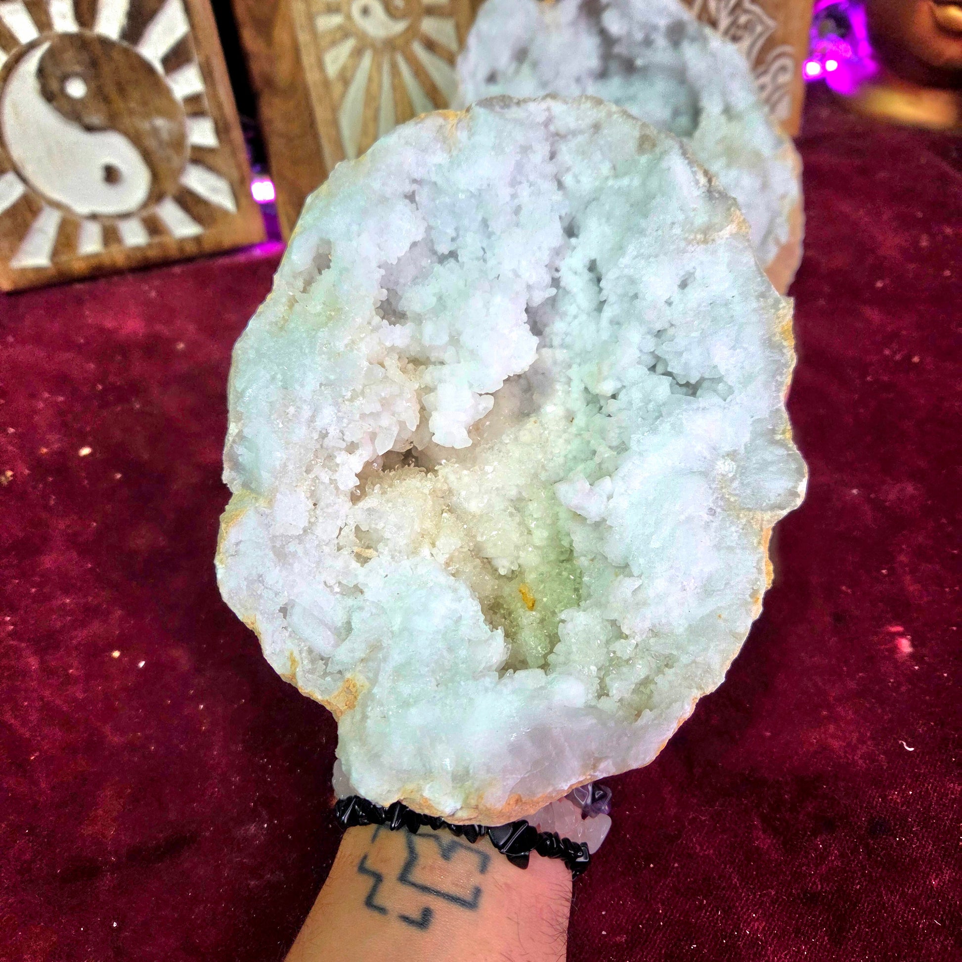 Utiliza estas geodas de cuarzo para decorar tu altar, cargar tus cristales, o simplemente como elementos decorativos en tu hogar. Además de su belleza estética, las geodas de cuarzo también son conocidas por promover la claridad mental, la concentración y la conexión espiritual.