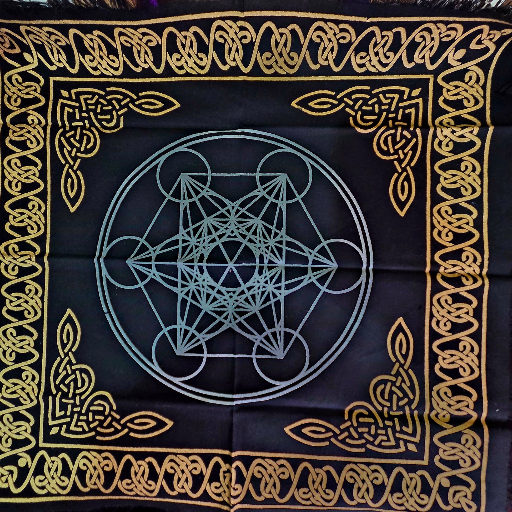 El diseño detallado y artístico del mantel presenta una combinación de símbolos y motivos esotéricos, que evocan la energía y la magia del universo. Para inspirar y potenciar tu conexión con las cartas y las energías que representan.