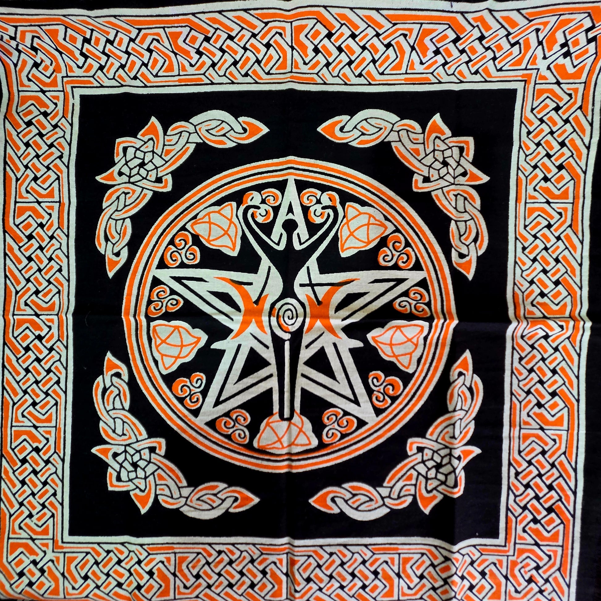 El diseño detallado y artístico del mantel presenta una combinación de símbolos y motivos esotéricos, que evocan la energía y la magia del universo. Para inspirar y potenciar tu conexión con las cartas y las energías que representan.