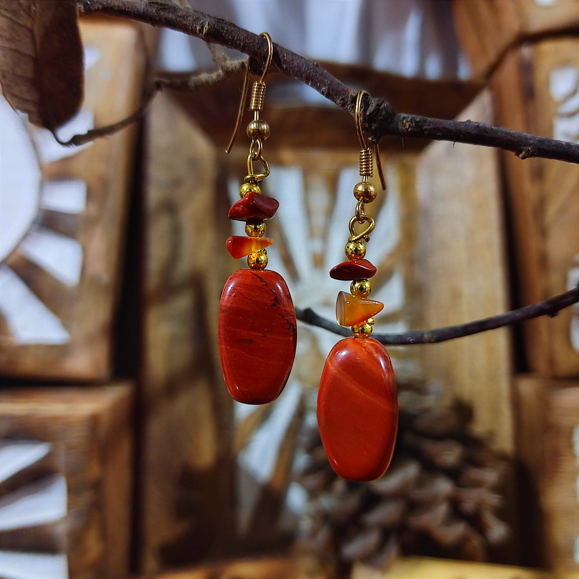 Pendientes Rodado Jaspe Rojo – Vitalidad, Energía y Estabilidad Emocional