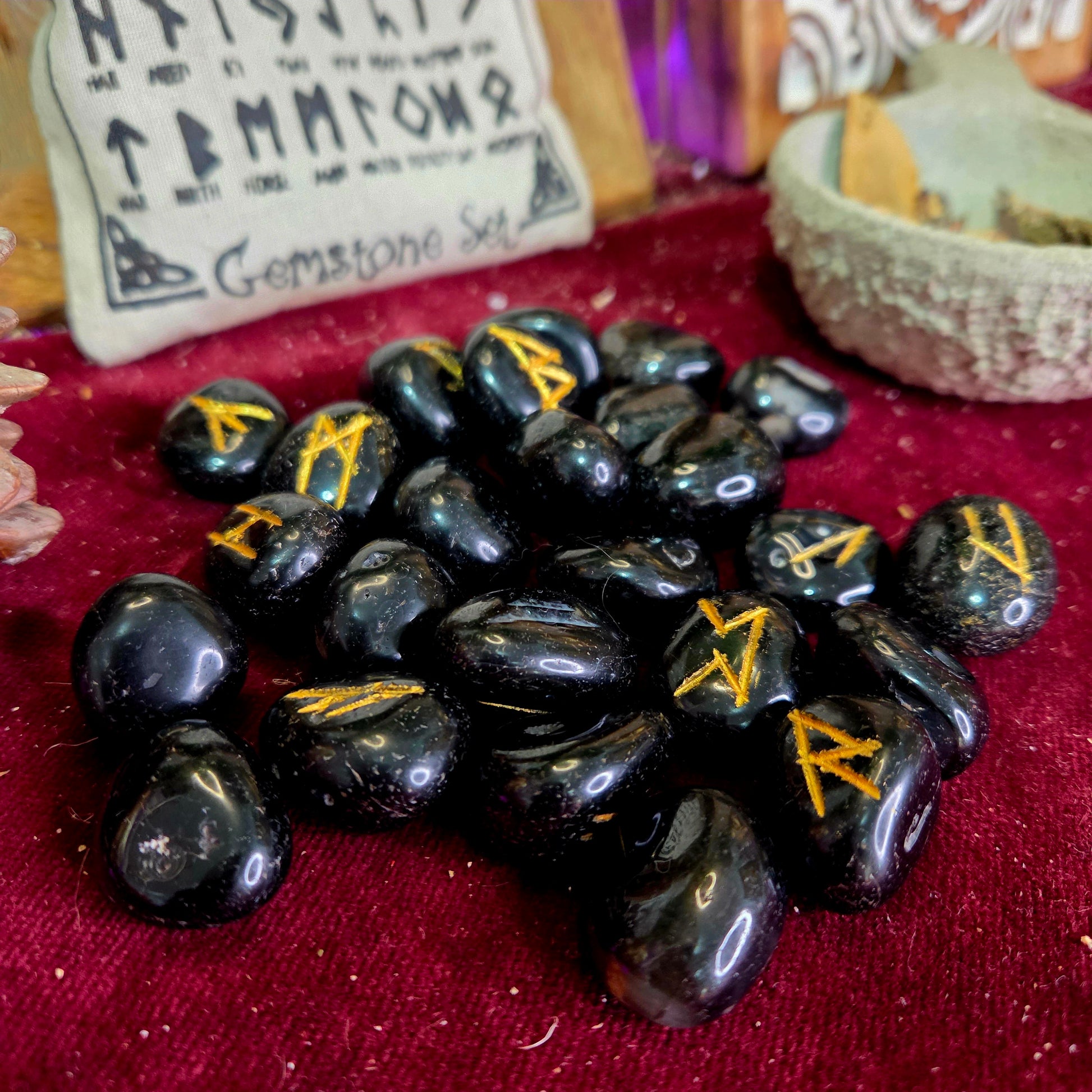 Explora el poder de la intuición con nuestras Runas de Bruja de Ónix, un oráculo místico que combina la antigua sabiduría nórdica con la fuerza protectora del ónix.
