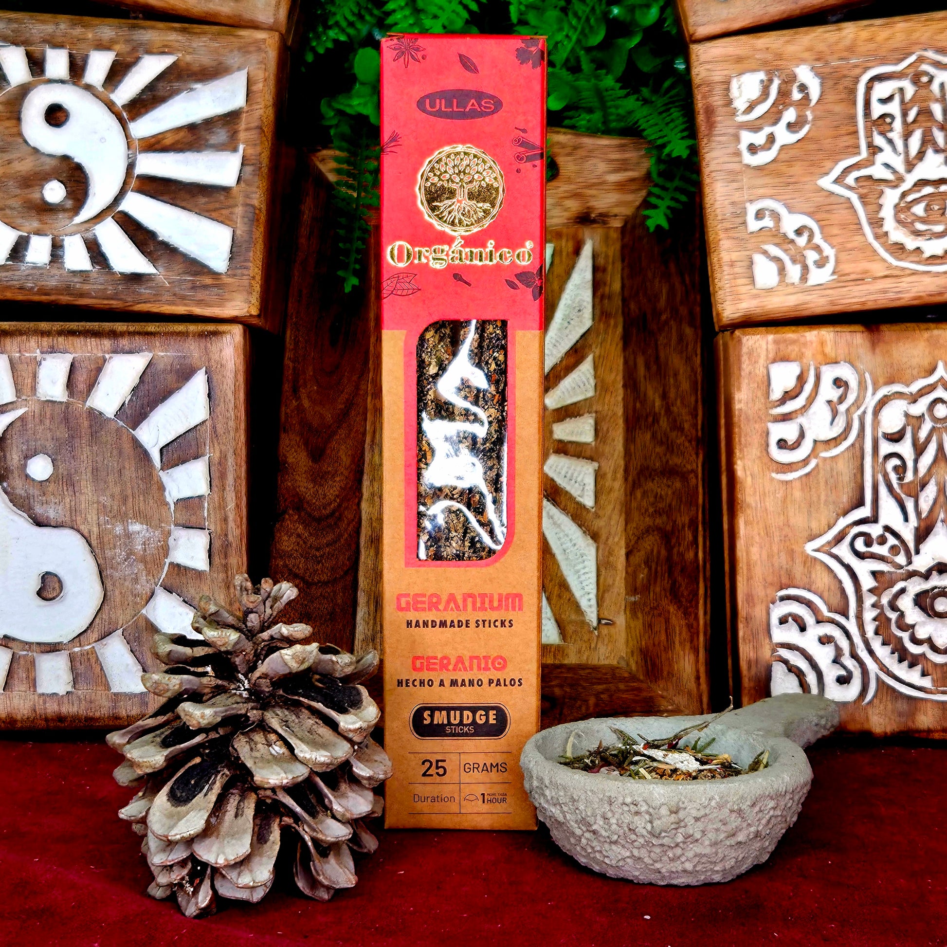 El incienso de geranio equilibra cuerpo y mente, ayudando tanto a relajar como a revitalizar. Perfecto para sesiones de yoga, baños relajantes o simplemente para disfrutar en casa.