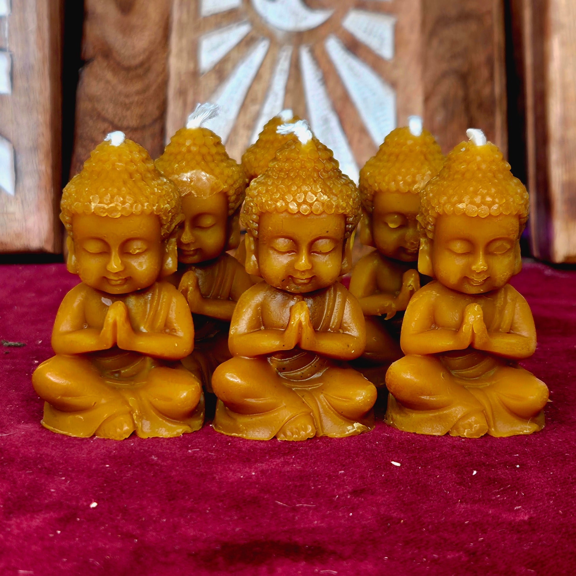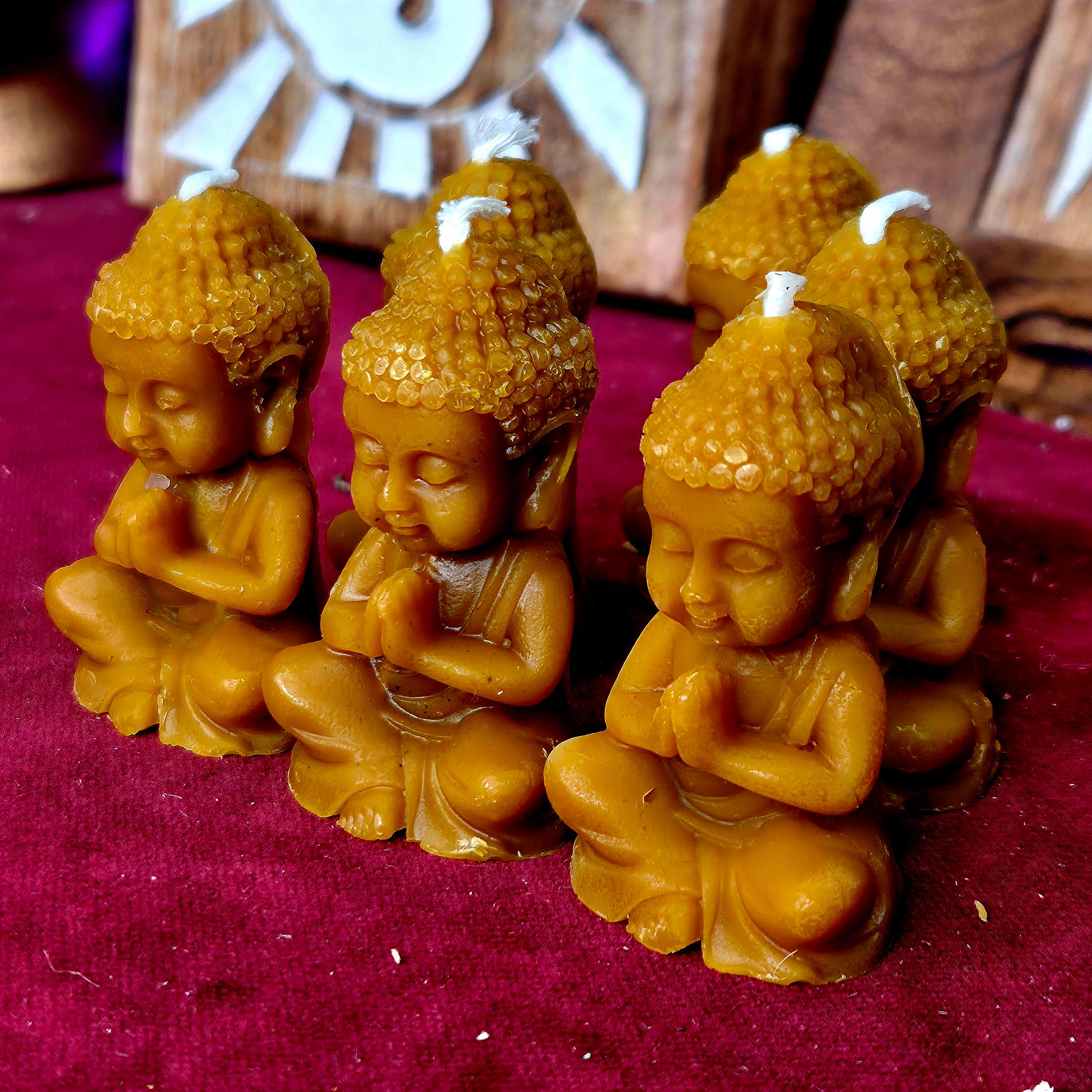 Cada vela está hecha a mano con cera de abeja pura y miel natural, lo que le da un aroma dulce y reconfortante. La combinación de la cera de abeja y la miel crea una vibración energética que atrae la abundancia y la prosperidad a tu vida.